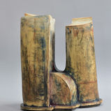 Continuing this dynamic trio is ceramist Martin Lovell, whose work for "Urban Currents" reflects mechanical forms, shapes, and textures observed in industrial settings. His multi-coloured surfaces of worn machinery expose different layers of use and human activity, exploring themes of degradation and erosion through intuitive development and underglaze applications.