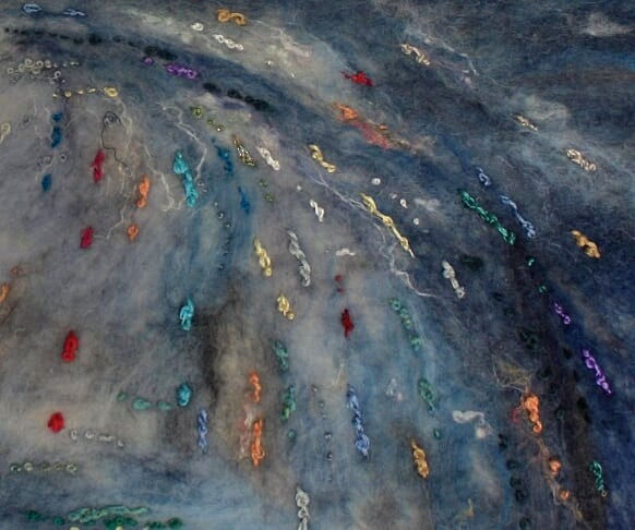 Taking inspiration from the land where they live, they use nature's resources to re-imagine the scenes around them. Using the ancient technique of felting they combine wool, silk, and threads to create unique wool paintings.